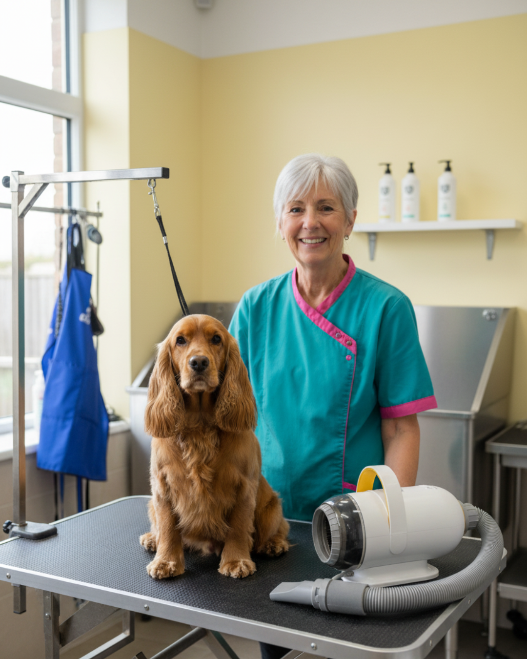MUGGI Pulseur pour Chien 2-en-1 avec Fonction Aspirateur Poils de Chien - Séchoir pour Chiens 3200W, 7 Vitesses Chaud/Froid, Anions Anti-Statique, Silencieux, Tuyau Extensible, 4 Buses Incluses